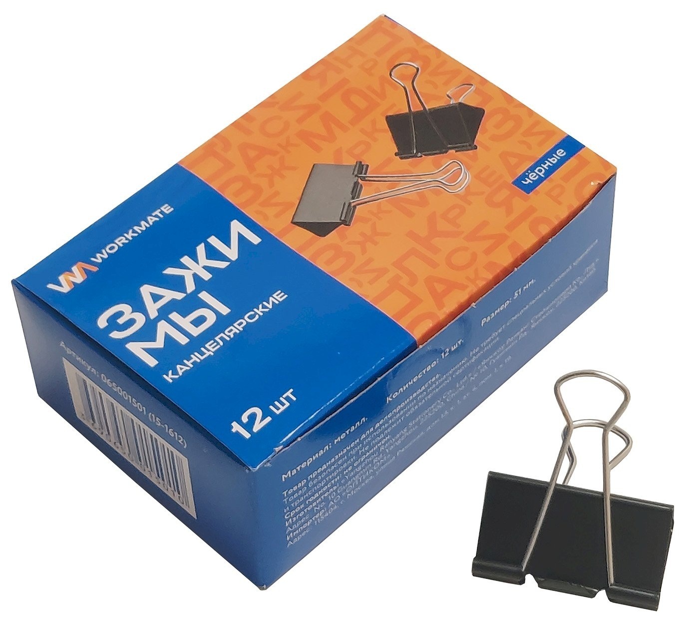 Зажим канц 51мм "Workmate" черные 15-1612
